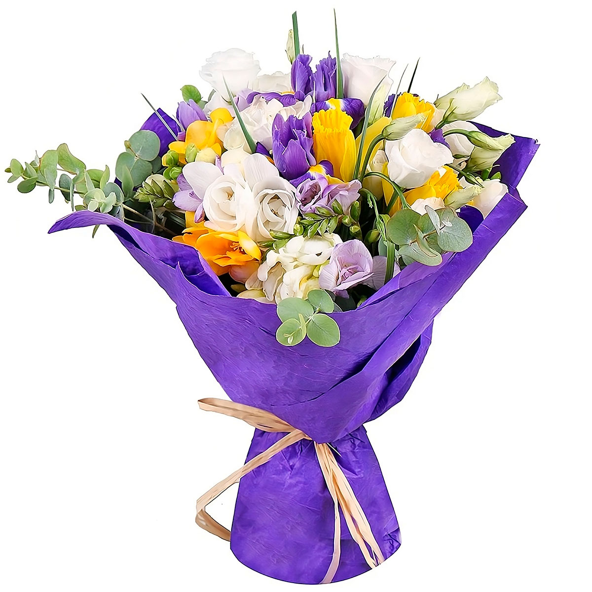 | Состав | Ирисы, Нарциссы, Эвкалипт, Эустомы |