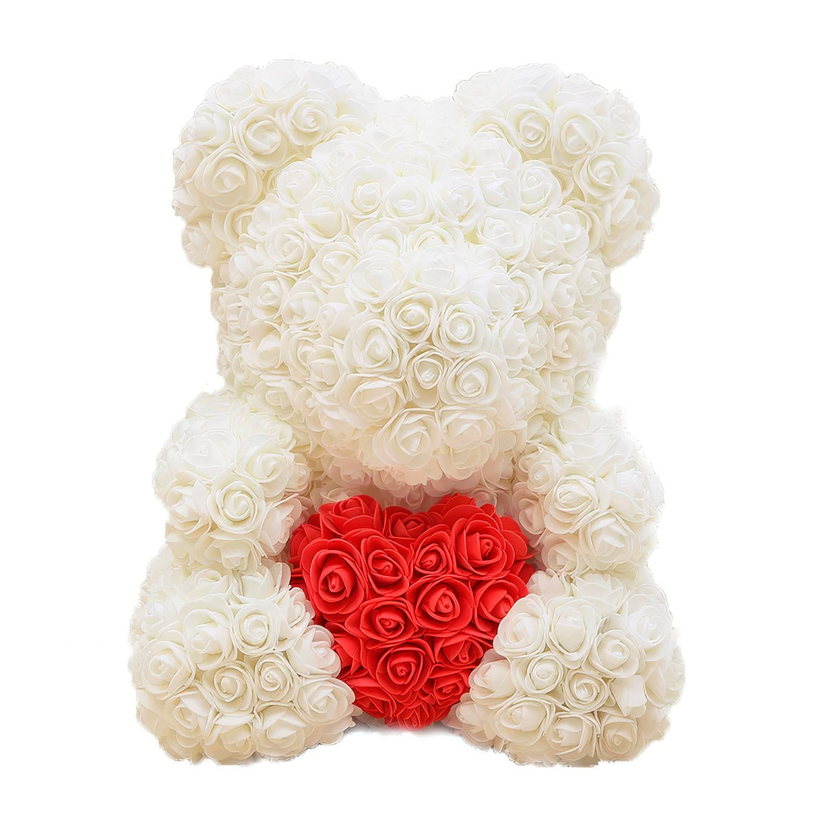 Мишка из роз бежевый с красным сердцем (40 см) с доставкой по г Курахово: вы можете купить подарок в интернет магазине «Флормания» по цене за 5990 руб.