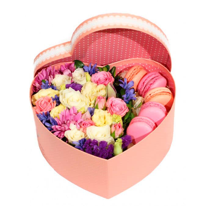 Цветы в коробке «С печеньем» с доставкой по г Курахово: вы можете купить букет в цветочном интернет-магазине «Флормания» по цене от 2850 руб.