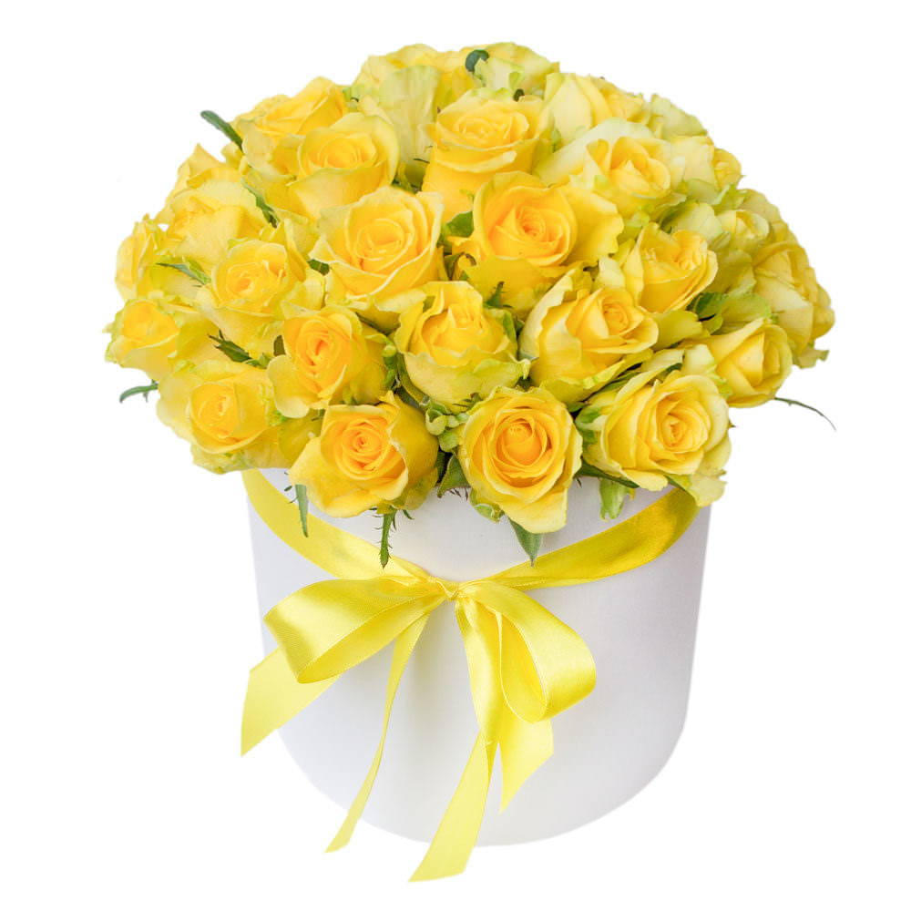 Цветы в коробке «Желтые Розы» с доставкой по г Курахово: вы можете заказать букет в цветочном салоне «Флормания» по цене от 2850 руб.