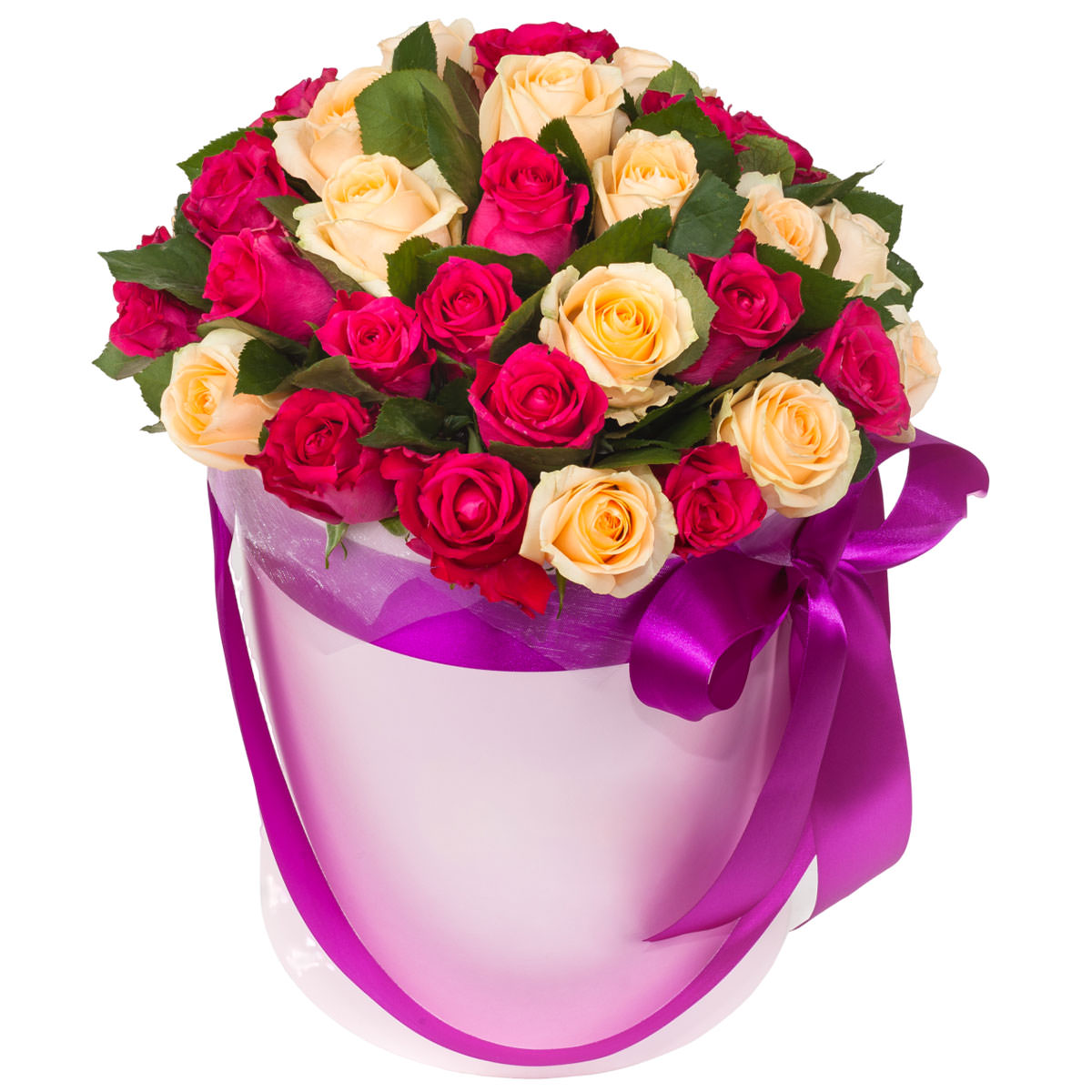 Цветы в коробке «Золотые сны» с доставкой по г Курахово: вы можете заказать букет в гипермаркете цветов «Флормания» по цене от 2850 руб.