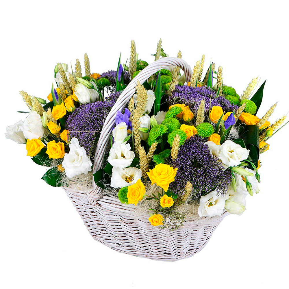 Цветы в корзинке «Летняя лужайка» с доставкой по г Курахово: вы можете заказать букет в цветочном гипермаркете «Флормания» по цене от 3099 руб.